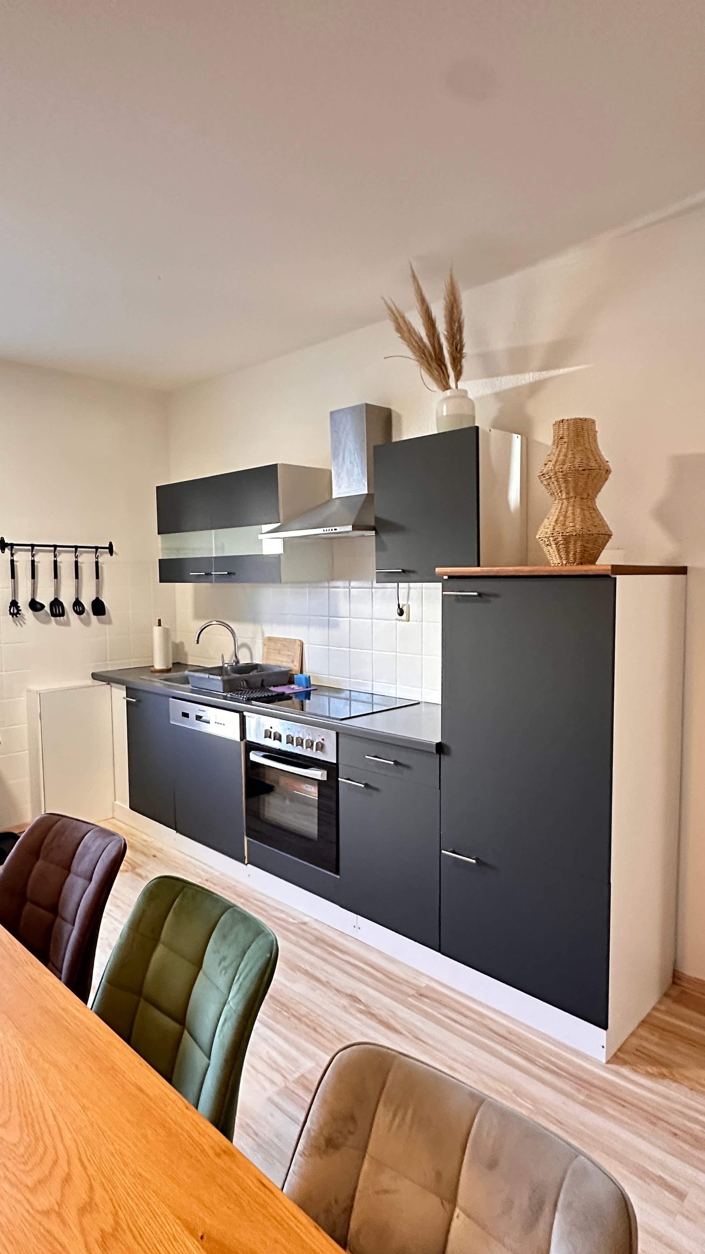 Das geräumige Wohnzimmer lädt mit seiner stilvollen Einrichtung zu entspannten Abenden ein. Die separate, voll ausgestattete Küche bietet alles, was für gemeinsame Mahlzeiten benötigt wird.